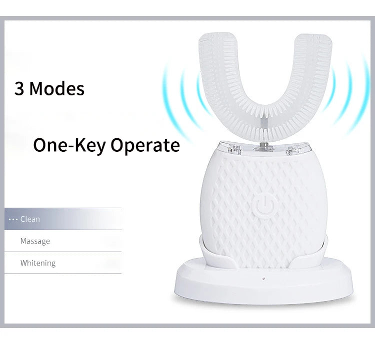 - U-Shaped Design: Full coverage cleaning for upper and lower teeth simultaneously.