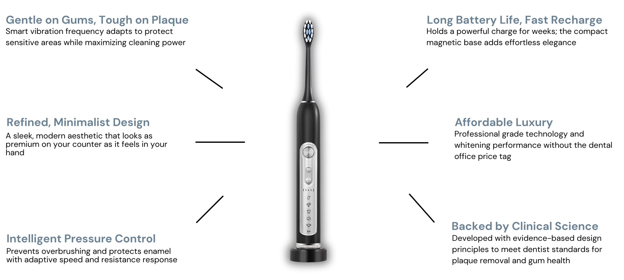 Professional grade outcomes shouldn’t be limited to the dentist’s chair. We bridge the gap between clinical innovation and at home care, empowering you to maintain a brighter, healthier smile with the same sophistication found in modern dental clinics.